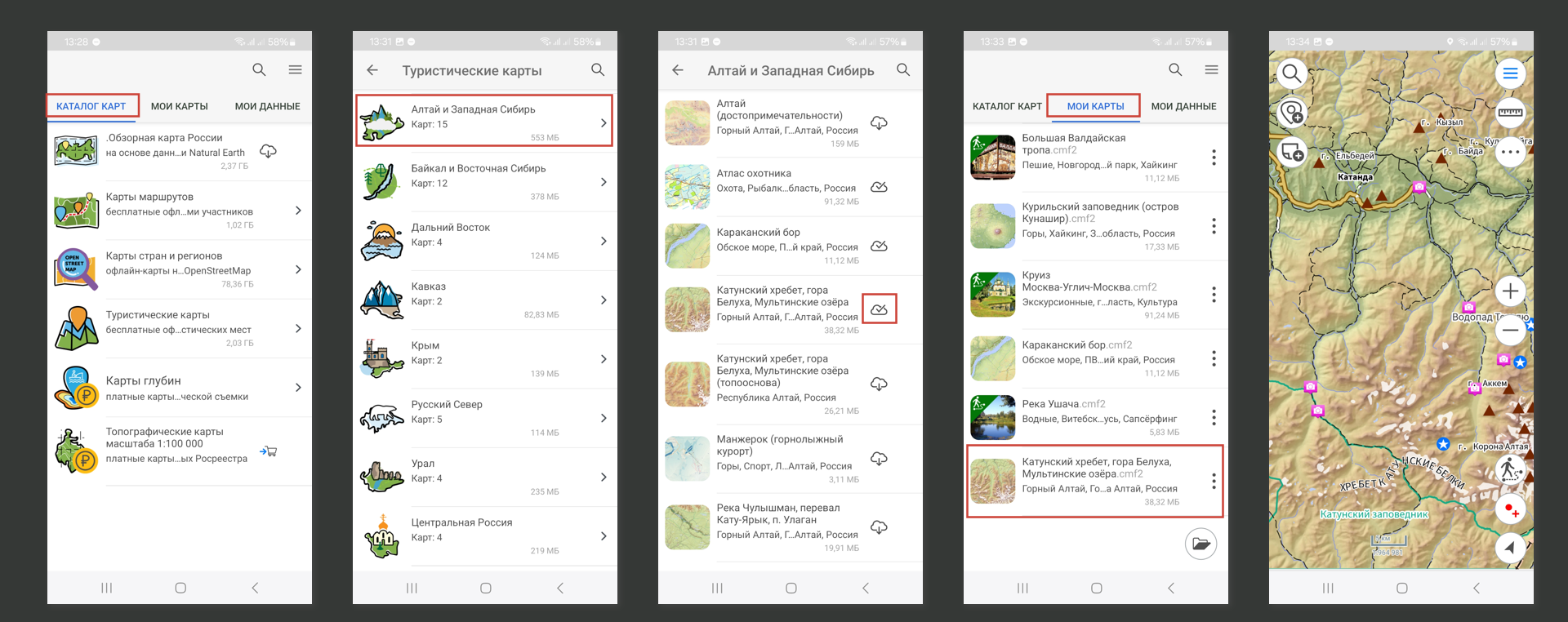 - Скачайте нужную карту из «Каталога карт» в мобильном приложении Карта РУ.