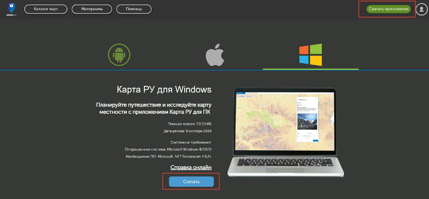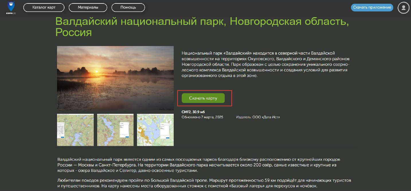 - Скачайте нужную карту из «Каталога карт» на сайте Карта РУ.